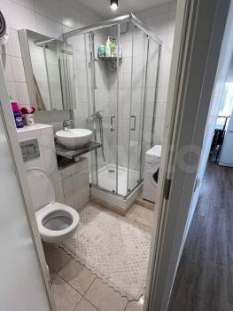 Кухня оборудована всем необходимым: современная плита, микроволновая печь и вместительный холодильник. Санузел совмещённый, оснащён душевой кабиной и стиральной машиной.