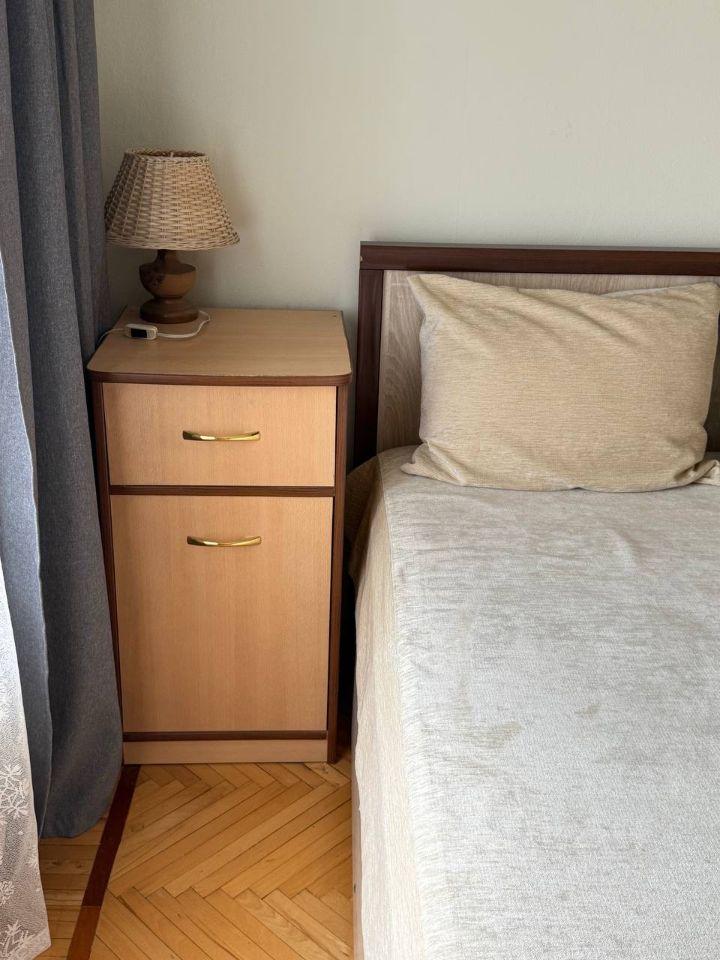 Квартира оборудована мебелью: кухонный гарнитур, стол со стульями, кровать с матрасом, шкафы в спальне, коридоре, гостиной, диван раскладывающийся. На диване очень удобно спать или отдыхать компанией. Что позволяет сразу заселиться и чувствовать себя комфортно.