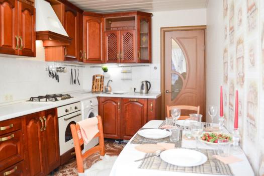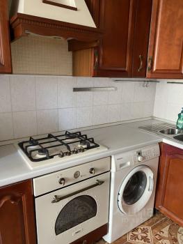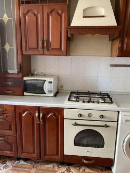 На кухня небольшая, но полностью укомплектованная. Раздельный санузел. В квартире есть всё необходимое для комфортного проживания: холодильник, СВЧ печь, телевизор и стиральная машина, утюг и пылесос.