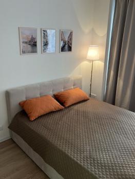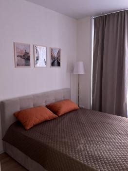 Сдается на длительный срок 1-к квартира. В квартире есть все необходимое для комфортного проживания. Вся мебель новая: кухня и шкафы изготовлены по индивидуальному заказу, кровать с подъемным механизмом, очень удобный, раскладной диван. Организовано большое пространство для хранения. В кухне установлена качественная, встраиваемая техника: холодильник, ПММ, индукционная плита, вытяжка.