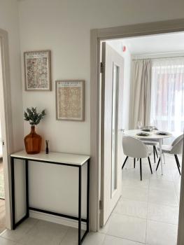 санузел - раздельный, мебель - кухня, хранение одежды, спальные места, кондиционер, холодильник, плита, микроволновка, стиральная машина, посудомоечная машина, телевизор.