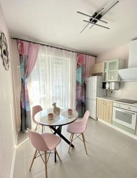 Свежий ремонт в светлых тонах, новая мебель, удобная планировка, просторная кухня 10 кв. м, застеклённый балкон. Квартира полностью укомплектована мебелью и техникой: стиральная машина, холодильник, микроволновка, варочная панель, духовой шкаф, кондиционер, телевизоры. Много мест для хранения, в шкафах-купе и комодах.