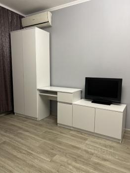 Квартира полностью готова к заселению. Просторная комната с вместительным шкафом-купе, раскладной диван с ортопедическим матрацом. Телевизор, кондиционер, свет подключены к "умному дому": можно включать/выключать голосом.