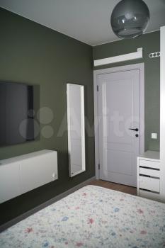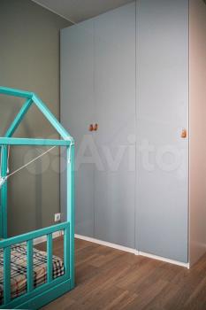 В спальнях новая мебель в светлых тонах. В каждой комнате расположился вместительный шкаф для хранения. Есть место для оборудования рабочей зоны ребенку или себе.