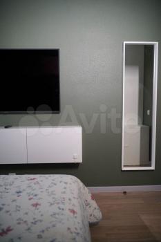Комната укомплектована (кровать, комод, обеденный стол, туалетный столик). В квартире есть вся техника для комфортного проживания (стиральная машина, холодильник, микроволновка).