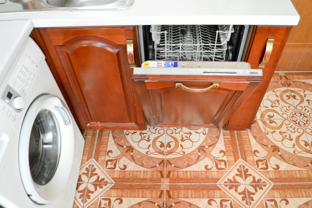 В квартире сделан качественный евроремонт. Для вашего комфорта здесь есть вся необходимая техника: кондиционер, холодильник, посудомоечная и стиральная машины, а также телевизор. Мебель имеется как в комнате, так и на кухне, что позволит сразу же почувствовать себя как дома.