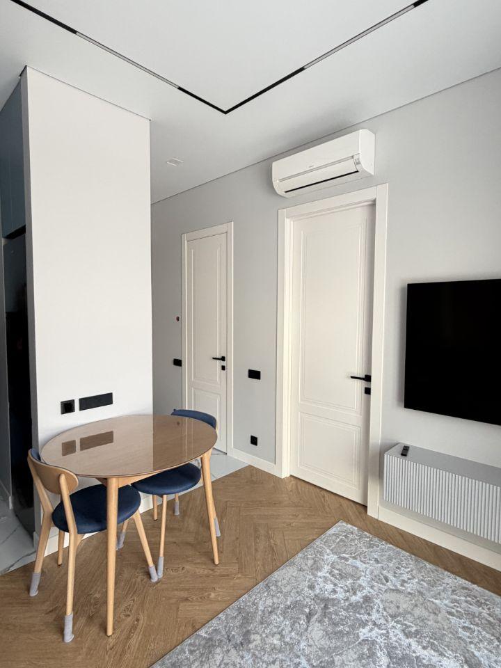 Квартира полностью меблирована: на кухне и в комнате есть вся необходимая мебель, а также современная техника — кондиционер, холодильник, посудомоечная и стиральная машины, телевизор. Ванная комната оборудована ванной. Интерьер выполнен в светлых и приятных тонах, что создаёт атмосферу уюта и спокойствия. Скоростной интернет позволит оставаться на связи и работать из дома без перебоев.