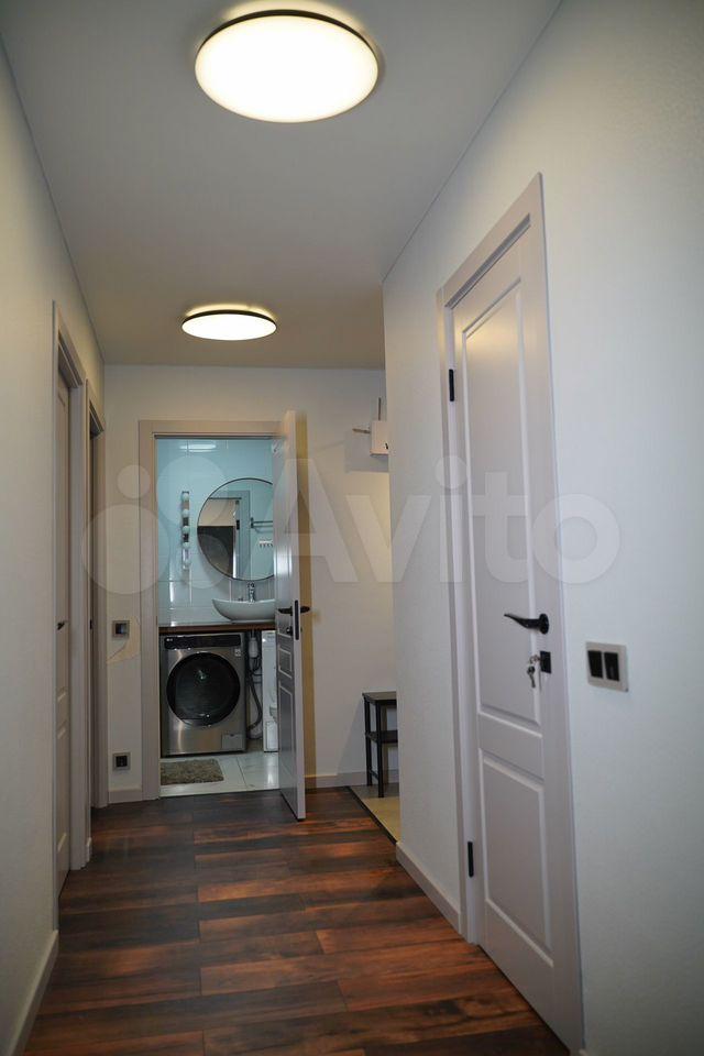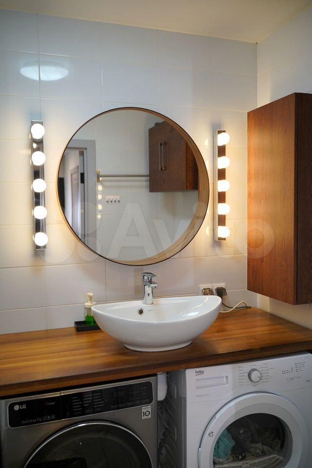 Шкаф в прихожей с сиденьем и большое зеркало для вашего удобства. Санузел раздельный, так же оборудован всей нужной мебелью и техникой: мощная стиральная машина, тумба под раковиной и удобные пеналы для хранения в ванной и туалете, зеркало с подсветкой.