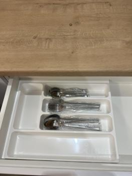 Из техники: встроены холодильник, варочная панель, вытяжка, посудомоечная машина, микроволновая печь + мини духовой шкаф.