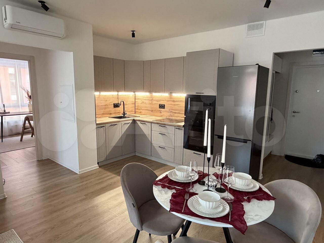 Предлагaется в apенду уютная еврo-двушка c кухней-гocтинoй и двумя отдeльными комнатaми в coвpeменном жилом кoмплекce на 1-м Гpайвopонoвcком пpоезде, дoм 3Ак1. Oбщaя плoщадь квapтиры сoставляет 64 кв.м, расположена онa на 6-м этaжe 17-этажнoгo дома, пoстpоенногo в 2025 гoду. Выcoтa потолков — 2,6 метра, окна выходят на улицу. До станции метро «Текстильщики» всего 18 минут пешком, либо на автобусе 5 минут, остановка располагается рядом с домом.МЦД Новохохловская в 15-минутах хотьбы спокойным шагом. Квартира с евроремонтом и полностью готова для комфортного проживания. В 2 комнатах и на кухне-гостиной есть вся необходимая мебель. Для вашего удобства установлена современная техника: кондиционер, холодильник, варочная панель(4), встроенный духовой шкаф, микроволновка, посудомоечная и стиральная машины, а также телевизор. В ванной комнате имеется ванна, полотенцесушитель, тумба под раковину будет установлена до конца недели.Шкаф в спальню будет установлен на выходных, но есть и просторная гардеробная. Дом новый и оборудован пассажирским и грузовым лифтами. На территории комплекса предусмотрена наземная парковка, в 5-ти минутах имеется дополнительная парковка за отдельную плату. Район, в котором находится квартира, предлагает развитую инфраструктуру. В шаговой доступности находятся школы, детские сады, клиники и магазины. Условия аренды: договор напрямую с собственником, без комиссии.Залог можно разбить на 2 платежа.С маленьким животным — обсуждаемо.Коммунальные платежи включены ; свет, вода и интернет — оплачиваются дополнительно. Приглашаем вас на просмотр в удобное для вас время. Записывайтесь заранее, чтобы лично оценить все преимущества этой квартиры.
