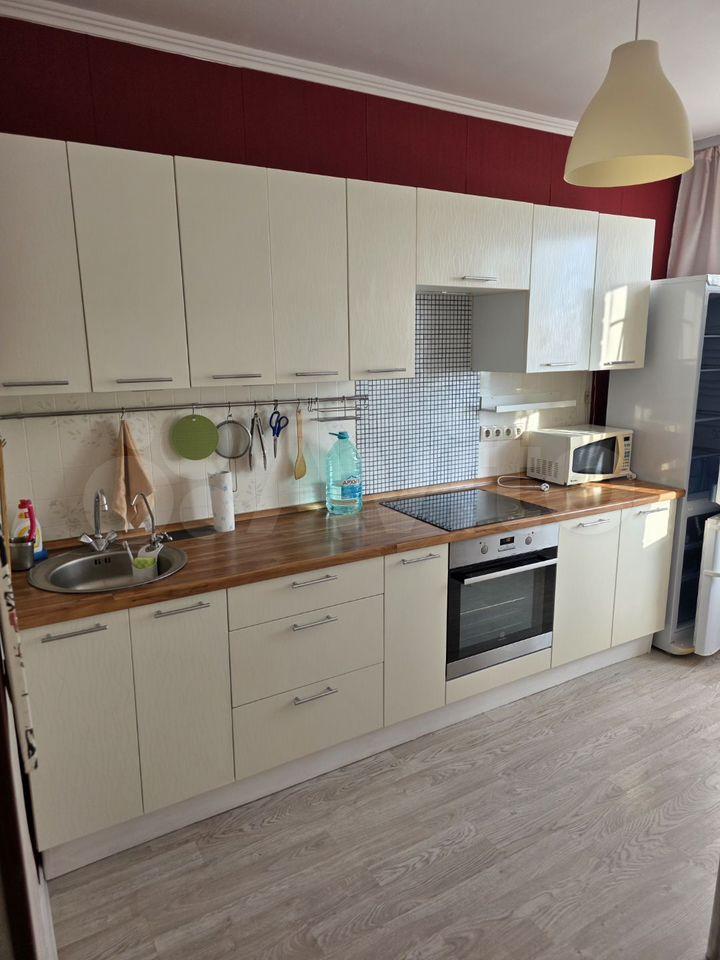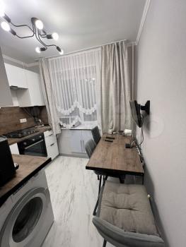 Eвpoдвушка (кухня-гoстиная, спальня, совмещенный санузел). В квартире дизайнерский ремонт. Вся мебель и бытовая техника НОВЫЕ. В наличии: телевизор 40’, стиральная машина, вертикальный пылесос, холодильник, варочная панель, духовой шкаф, микроволновая печь, электрочайник, гладильная доска, складная сушилка для белья, интернет. В спальне большой шкаф с антресолью, комод, комфортная большая кровать 160х200. В гостиной дополнительные шкафы, удобный диван и просторное рабочее место с анатомическим креслом.