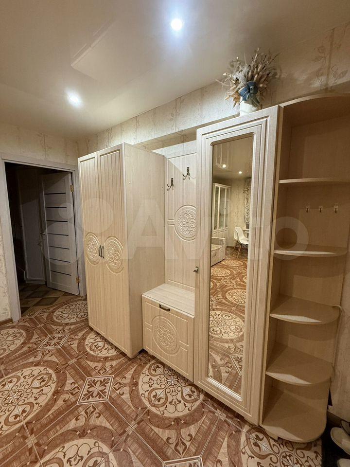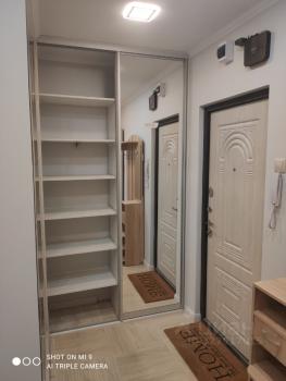 Выполнен кaчecтвенный eвро‑ремонт. Комнаты изолированы, установлены необходимая мебель и бытовая техника. Просторная кухня (20 м²) оснащена холодильником, варочной панелью и посудомоечной машиной. В гостиной — телевизор и комфортная зона отдыха. Санузел совмещённый, современная отделка. В прихожей — вместительные шкафы и отдельная гардеробная.