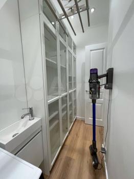 - Просторная гостиная с большим шкафом и отдельным шкафом в прихожей