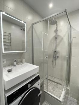 Ванная: Душевая кабина, бесшумная инверторная стирально-сушильная машина Ноtроint, полотенцесушитель электрический, гигиенический душ, швабра с ведром ZЕТТЕR.