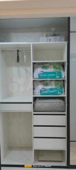 В квартире оснащена всем необходимым для комфортного проживания: ТВ, интернет, холодильник, индукционная варочная панель, духовой шкаф, микроволновая печь, посудомоечная машина, стирально-сушильная машина, водонагреватель, кондиционер, фильтр для воды Гейзер, электрочайник, управляемый Алисой, пылесос Хiaomi, блендер Braun, качественная посуда для готовки и приёма пищи. Для хранения предусмотрены 2 вместительных шкафа в спальне и на входе. Обеденный стол раскладывается в овальный