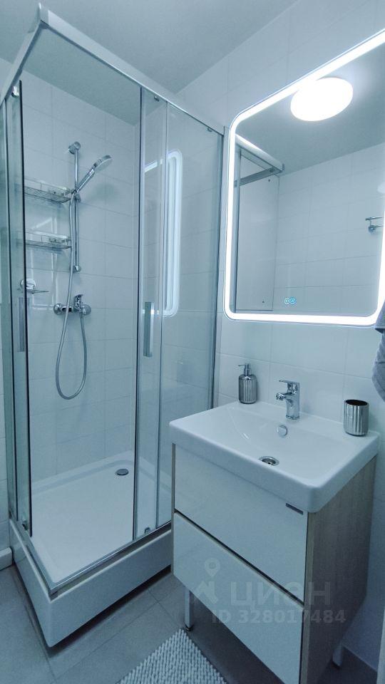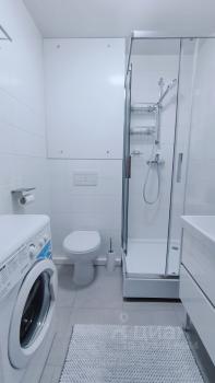 Светлая квартира с совмещённым санузлом и современной душевой кабиной.