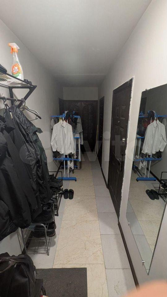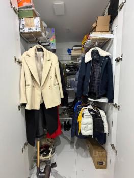 В прихожей имеется вместительный шкаф с выкатными ящиками и зеркалами от пола до потолка с ярким освещением.