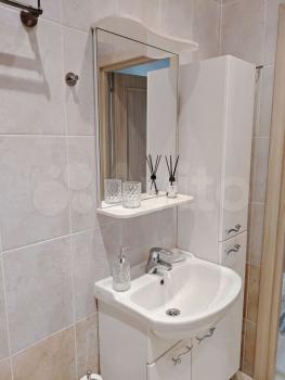 В ванной комнате: роскошная ванна, включая бразильский душ и настройки направления воды на лейке, широкая раковина (120 см) и большое зеркало, стиральная и сушильная машины. Имеются проточный водонагреватель на случай отключения горячей воды и датчики протечки.