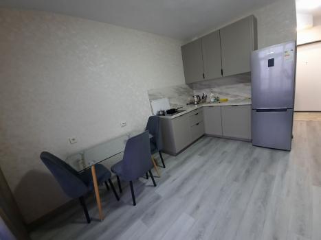 Квартира с дизайнерским ремонтом, полностью готова к проживанию. В комнате и на кухне есть вся необходимая мебель. Для вашего комфорта установлены два кондиционера, холодильник, посудомоечная машина, два телевизора и стиральная машина. Ванная комната оборудована душевой кабиной. Благодаря продуманной планировке, в квартире созданы все условия для удобного и комфортного проживания.