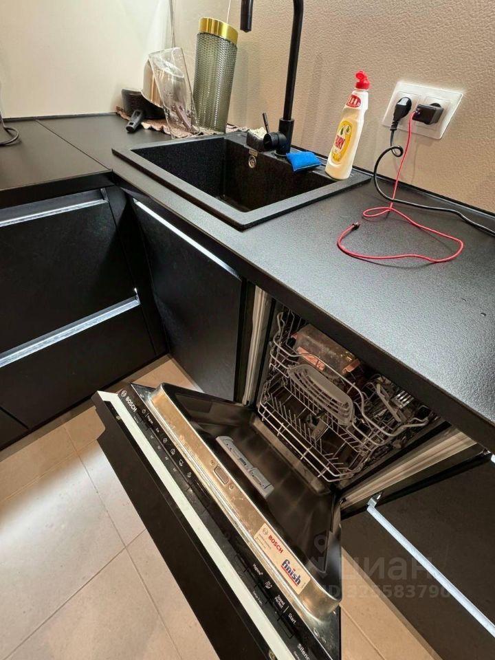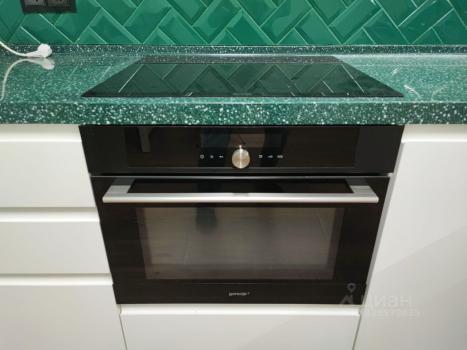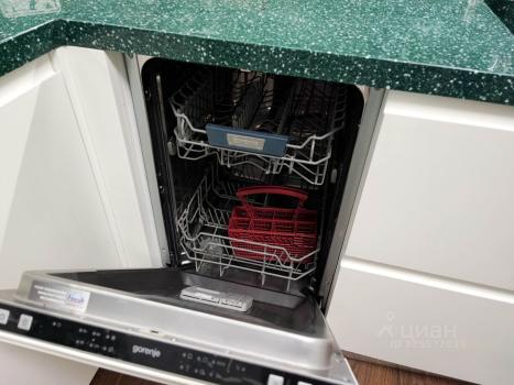 В кухне есть вся необходимая техника: холодильник, посудомоечная машина, духовой шкаф и микроволновка.