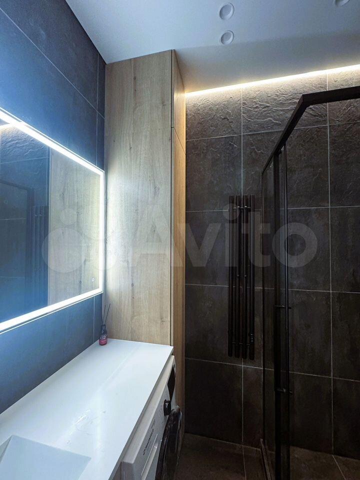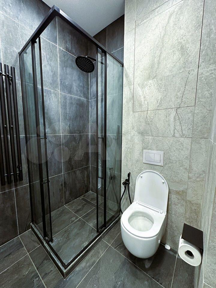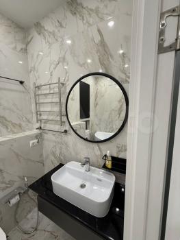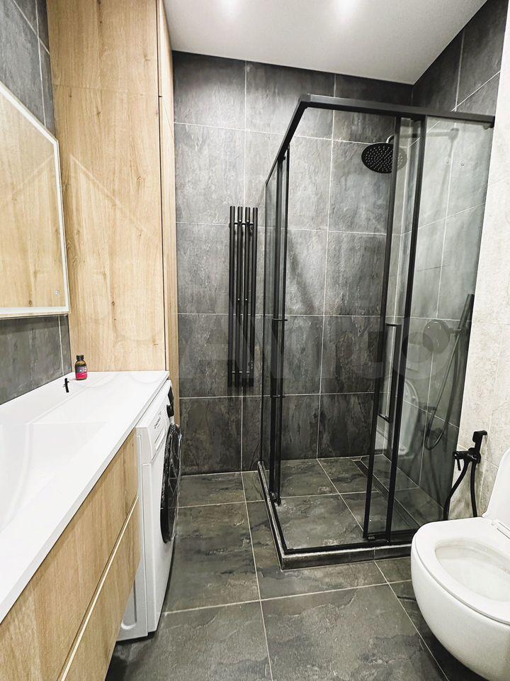 В квартире выполнен евроремонт, создающий атмосферу комфорта и уюта. Высокие потолки 2,64 метра добавляют простора. Пространство студии организовано с умом: есть удобная мебель на кухне и в комнате, что позволяет сразу заселиться и чувствовать себя как дома. Для вашего удобства установлена вся необходимая техника: кондиционер, холодильник, посудомоечная и стиральная машины. Санузел совмещённый, оборудован современной душевой кабиной.