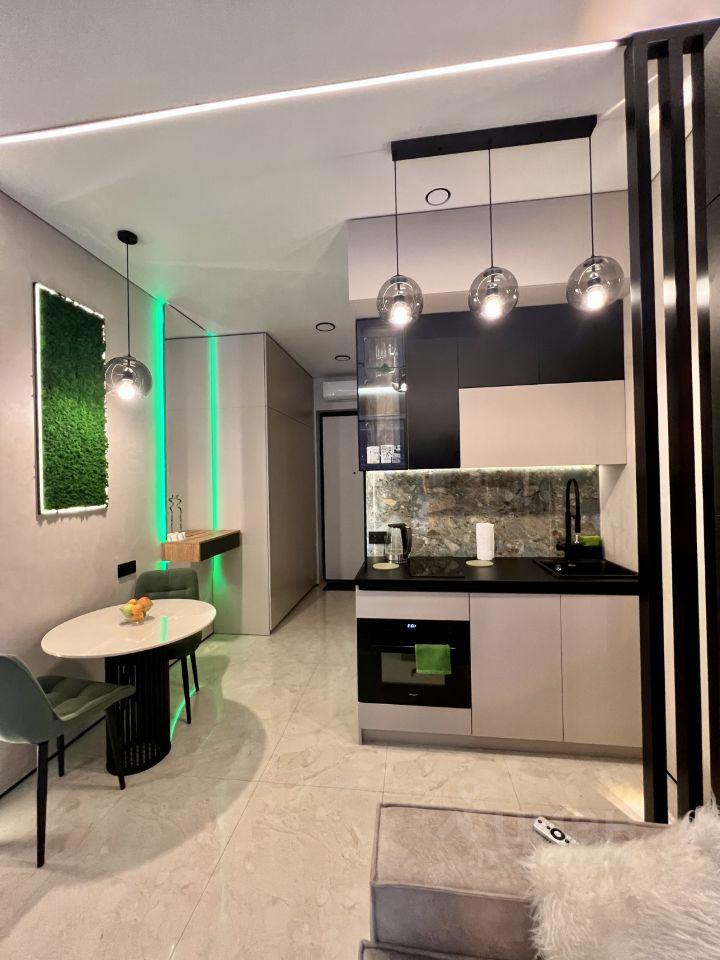 В квартире выполнен авторский дизайнерский ремонт, с использованием современных дорогостоящих экологичных материалов. Функциональная планировка с ярким холлом и огромной гардеробной с высокими потолками, просторной зоной отдыха и уютной спальней. Имеется вся необходимая мебель и бытовая техника: стиральная машина, посудомоечная машина, варочная панель, вытяжка, духовка, холодильник, кондиционер, водонагреватель.