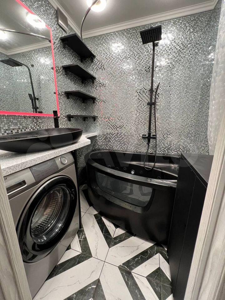 Внутри вас ждёт дизайнерский ремонт и продуманная планировка. В квартире есть всё необходимое для комфортной жизни: на кухне и в комнате установлена мебель, а также вся необходимая техника — кондиционер, холодильник, посудомоечная машина, телевизор и стиральная машина. Ванная комната оснащена душевой кабиной, а окна выходят во двор, что обеспечит тишину и уют.