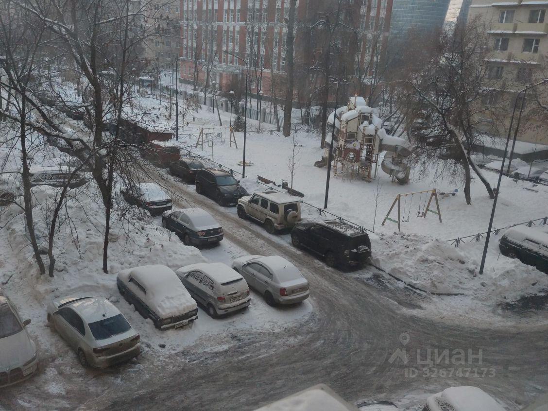 Из окон открывается вид на ГБОУ школу N56 имени академика В. А. Легасова и тихий двор с детской площадкой. В соседнем дворе государственная музыкальная школа имени А. Н. Александрова. Парковка за шлагбаумом во дворе.