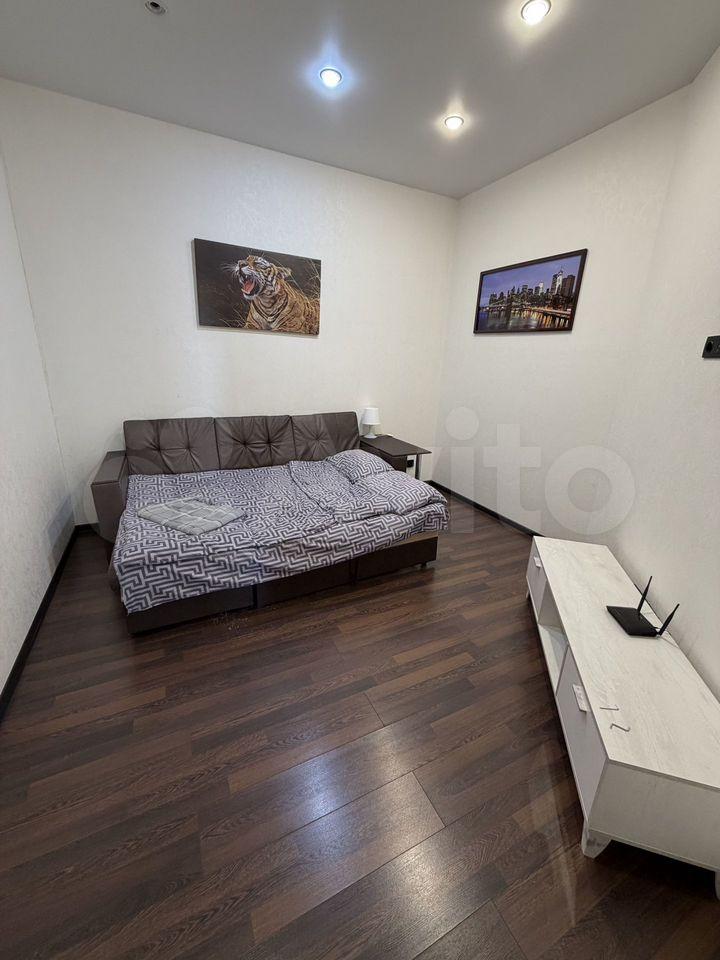 Квартира с дизайнерским ремонтом, полностью готова к проживанию. В комнате и на кухне установлена современная мебель, а также имеется вся необходимая техника: кондиционер, холодильник, посудомоечная машина, телевизор и стиральная машина. Ванна в санузле позволяет расслабиться после долгого дня. Из окон открывается вид на улицу, а балкон станет приятным местом для отдыха.