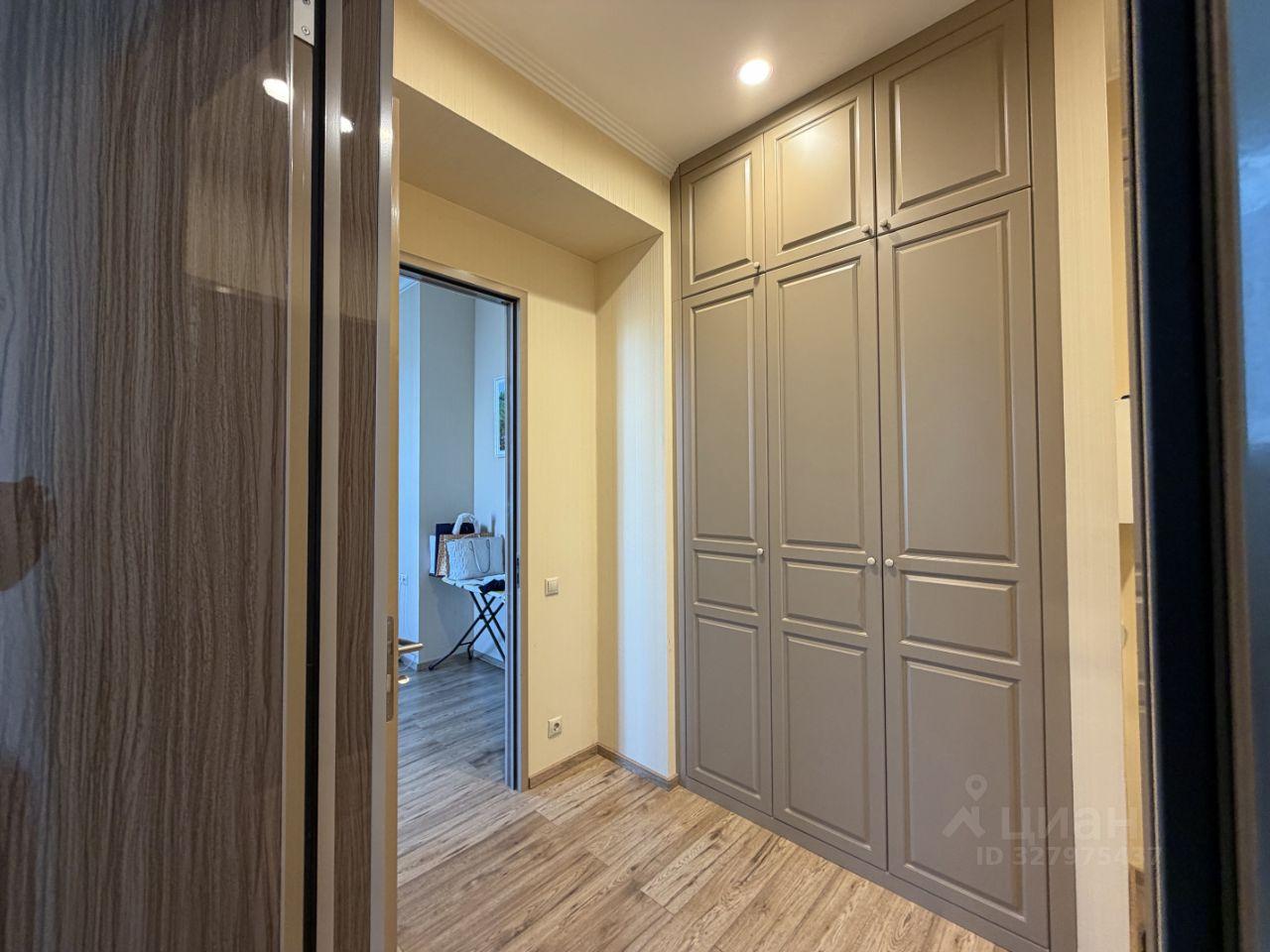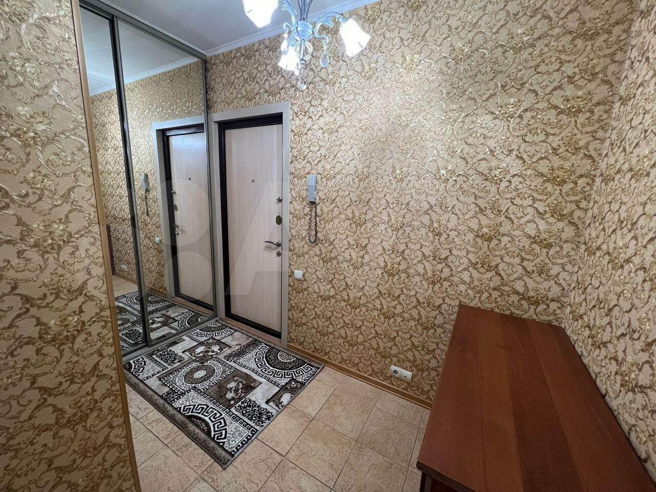 Выполнен качественный евроремонт. Комнаты изолированы, установлены необходимая мебель и бытовая техника. Просторная кухня (20 м²) оснащена холодильником, варочной панелью и посудомоечной машиной. В гостиной — телевизор и комфортная зона отдыха. Санузел совмещённый, современная отделка. В прихожей — вместительные шкафы и отдельная гардеробная.