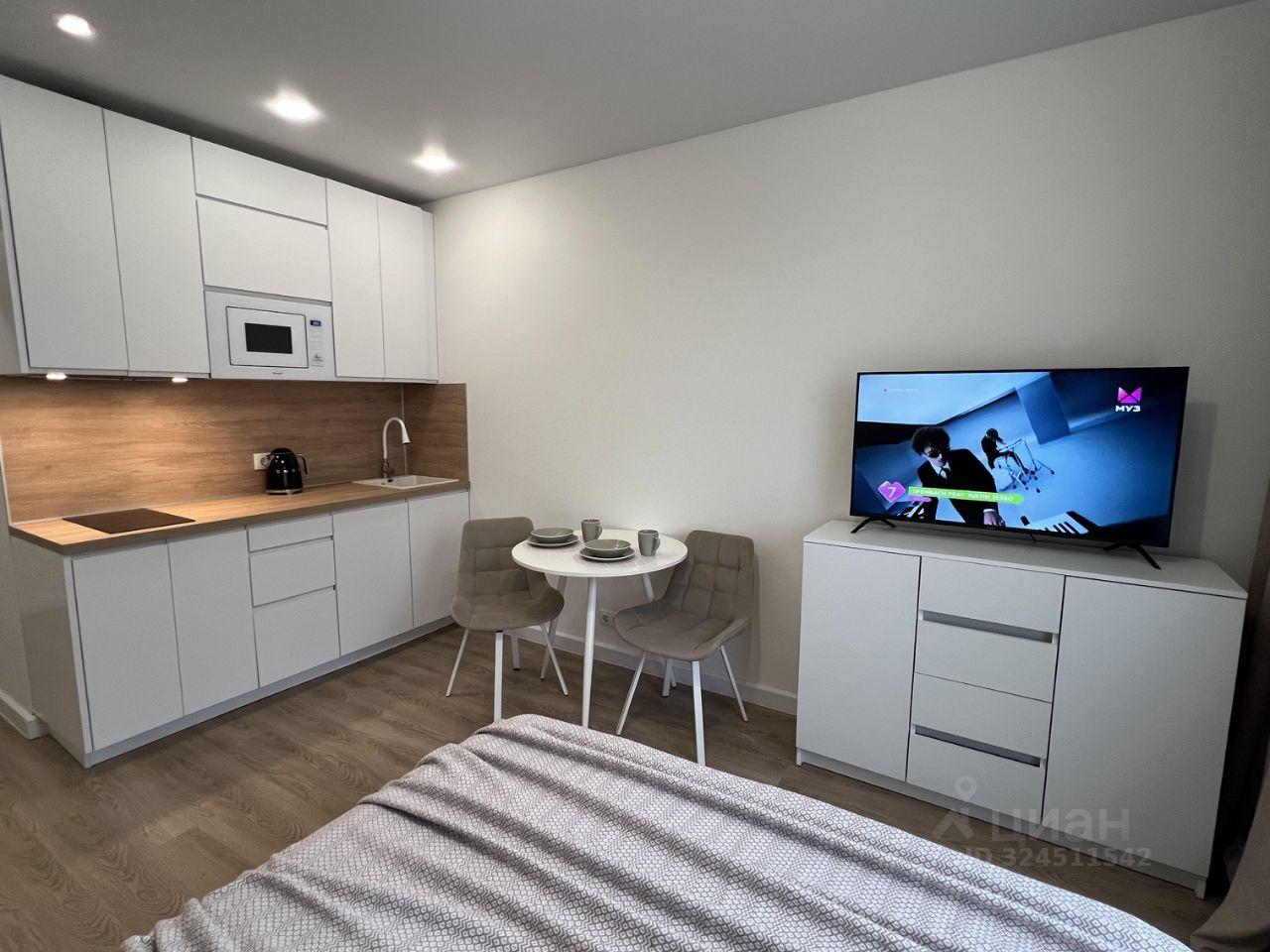 есть всё для комфортного проживания ( вся мебель: кровать с подъемным механизмом, 2 шкафа для одежды, телевизор, кухня со всей посудой, микроволновка, посудомойка, стиральная машина, плита, чайник, утюг, кондиционер.