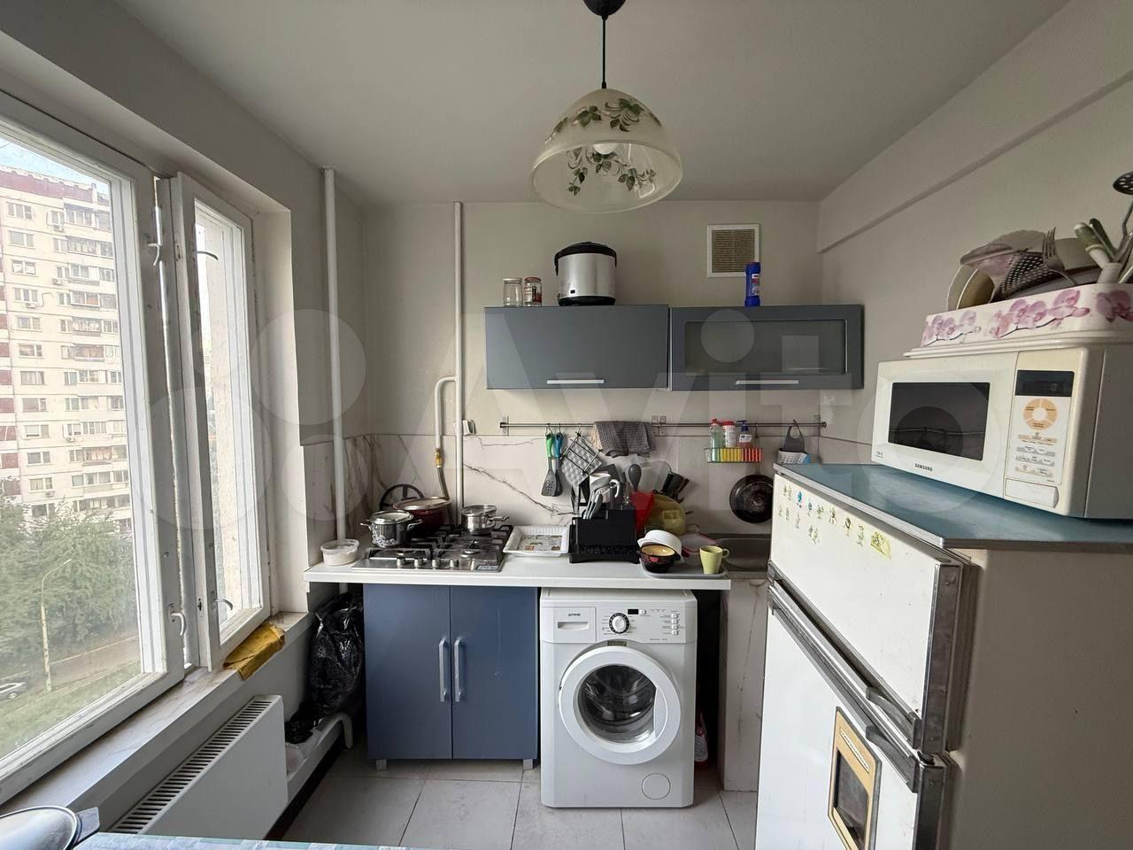 Квартира полностью готова для комфортного проживания: в комнате и на кухне имеется необходимая мебель, а также современная техника — холодильник и стиральная машина. Просторная кухня площадью 10 кв. м позволяет удобно готовить и принимать гостей. Санузел в хорошем состоянии.