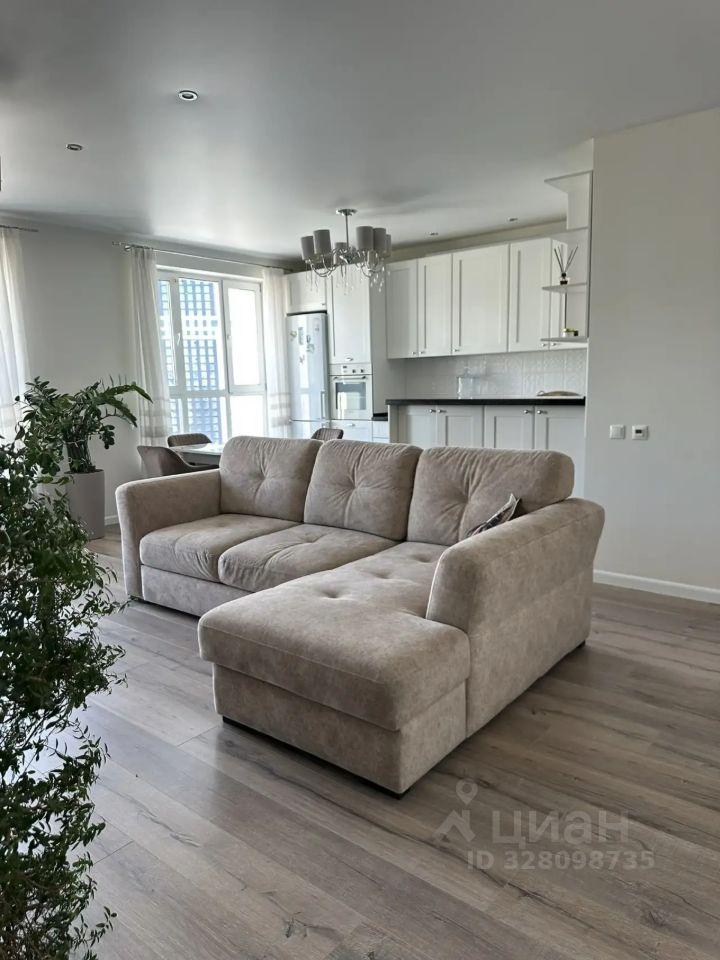 Сдается на длительный срок (11+ месяцев) просторная и светлая квартира в ЖК Лобачевский — ~95 м², 20 этаж монолитного дома. Полноценный семейный формат: большая кухня-гостиная с двумя панорамными окнами и видом, мастер-спальня с собственной гардеробной и санузлом, две отдельные детские (одна с балконом), второй полноценный санузел. Планировка продумана для комфортной жизни семьи с детьми — зонирование, приватность и достаточное количество мест хранения.